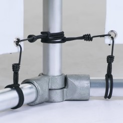 Les pieds du mur sont terminés par un joint annulaire muni d'un œillet de 10 mm. Ils peuvent être utilisés pour enfoncer un ancrage dans le sol ou vissés dans le sol pour une stabilisation supplémentaire. Il est également possible d'ajouter du poids aux extrémités des jambes de la structure.