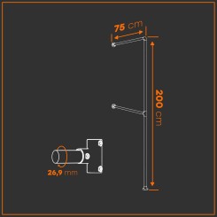 Modèle Essen. La combinaison d'angle avec une barre transversale (H200 x L75 cm) avec 2 points de fixation murale convient pour les studios, lofts et appartements ainsi que pour les boutiques et les ateliers de couture.