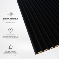 Le revêtement mural est fabriqué en MDF Premium robuste imitant le bois, ce qui garantit une utilisation à long terme. Le matériau est léger et élégant et offre de grandes propriétés acoustiques et thermiques.
