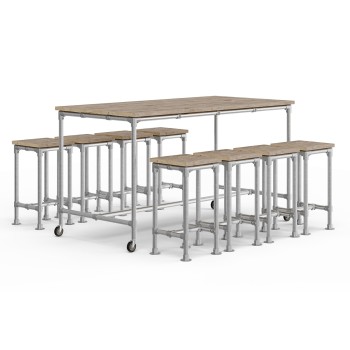 Découvrez la table de bar qui allie un caractère industriel à la fonctionnalité pour la restauration. Sa structure métallique solide et ses planches en épicéa naturel à humidité adéquate rendent ce meuble durable, stable et prêt à un usage intensif dans les restaurants, bars, bistros ou jardins de brasseries.