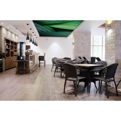 Le revêtement impressionnant pour les aspects décoratifs de connexion au plafond suspendus avec une construction robuste. Les profils en aluminium de 25 mm d'épaisseur sont assemblés en un cadre qui est utilisé pour étirer un tissu robuste résistant aux rayonnements UV.