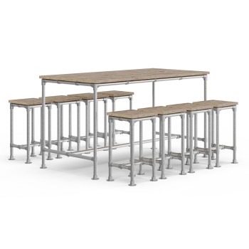 Punta su una struttura robusta e stabile in alluminio argentato o in acciaio di colore Vintage Brown. Ciascun telaio del tavolo da bar è resistente alla ruggine e all'umidità, garantendo una lunga durata e un aspetto immutato per gli anni a venire.