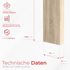 Parete a doghe autoportante - Rovere naturale - 22x70