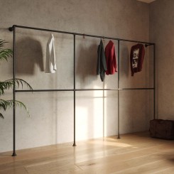 È possibile assemblare un armadio tipo Walk-in di grande capacità a partire da appendiabiti singoli, collegando tra loro pezzi adiacenti. In questo modo i vestiti in disordine diventeranno un ricordo del passato.