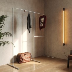 Realizzato in tubi d'acciaio, l’appendiabiti KLEMP e gli angolari in ghisa malleabile garantiscono un'eccezionale stabilità all'intera struttura.