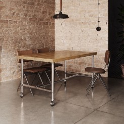 I mobili tubolari sono versatili e resistenti e possono essere utilizzati anche nel settore alberghiero e della ristorazione, ad esempio in una birreria all'aperto o sulla terrazza di un hotel o di un bar. I mobili in stile industriale sono incredibilmente facili da montare.