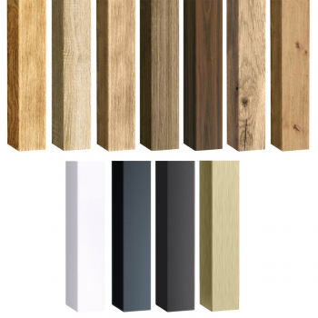 Offriamo due tipi di listelli, in MDF impiallacciato in laminato o in MDF impiallacciato in rovere naturale.