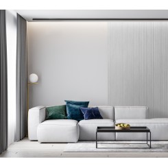 I possibili toni di colore, sia caldi che freddi, ti consentiranno di adattare facilmente le lamelle Onda a qualsiasi interno, indipendentemente dal suo stile. I colori neutri e la forma minimalista dei pannelli rappresentano una decorazione murale "evergreen" nei tuoi interni.