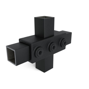 In magazzino - spedizione in 2–9 giorni lavorativiCroce a due vie - 25 mm. Morsetto di giunzione a 90° tra la guida centrale e un montante sulle ringhiere.