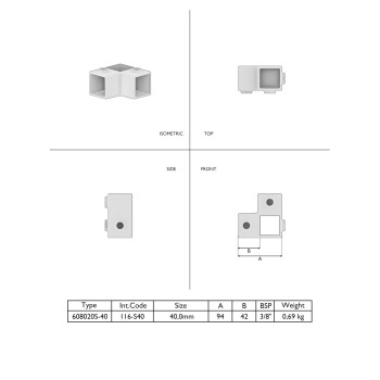 In magazzino - spedizione in 2–9 giorni lavorativiAngolo del montante continuo - 40 mm. Raccordo angolare (90°), dove il tubo verticale passa attraverso il morsetto.