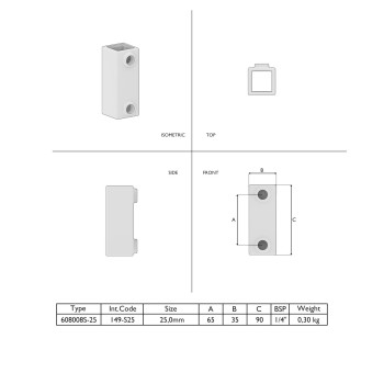 • Dimensione A = (diametro del raccordo 21,3 mm)