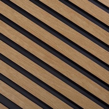 Utilizzando le lamelle da parete Medio, non solo trasformerete l'estetica dei vostri interni, ma migliorerete anche l'acustica della stanza. Questi pannelli riducono l’eco e i suoni sgradevoli, creando un ambiente piacevole per rilassarsi e lavorare.