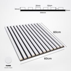 Vierkante 3D decoratieve akoestische panelen zijn een kleinere variant van de standaard vilten lamellen. De panelen zijn gemaakt van akoestisch vilt en hebben daardoor akoestische eigenschappen. Je kunt ze gebruiken om een houten hoofdeinde achter het bed te creëren of een moderne decoratieve muur achter de tv. De panelen zijn gemaakt in een vierkant formaat van 60 x 60 cm. Je kunt ze gebruiken om elke geometrische compositie op je muur te creëren! De gecanneleerde panelen kunnen aan het plafond worden gemonteerd. De installatie van de panelen is uiterst eenvoudig en gemakkelijk. Breng eenvoudig montagelijm aan op het paneel en plak het op de muur. Het vilt kan worden gesneden met een mes, b.v. een behangsnijder.