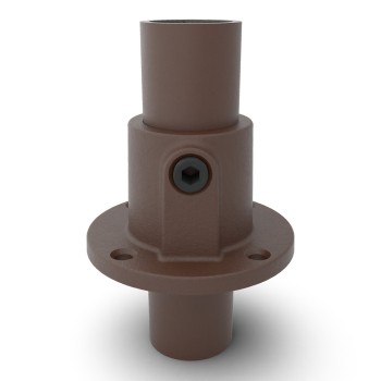 Doorlopende ronde voetplaat. Deze pijpverbinder is geschikt voor constructies waarbij de pijp volledig doorheen moet lopen. Geschikt voor gebruik met bijvoorbeeld tussenplanken.