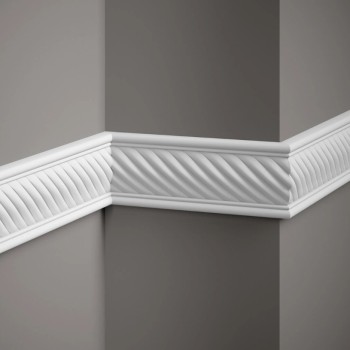 De Muurlijst MDC239F is een flexibel decoratief profiel dat ontworpen is voor installatie op zowel rechte als gekromde oppervlakken, zoals bogen of kolommen. Het heeft schuine groeven die het een moderne uitstraling geven. Met zijn weerstand tegen vocht, UV-straling en kleine mechanische schade is het geschikt voor gebruik in keukens, badkamers en andere veeleisende omgevingen. Na installatie wordt aangeraden om het te schilderen met een oplosmiddelvrije verf. Installatie met montagekit.