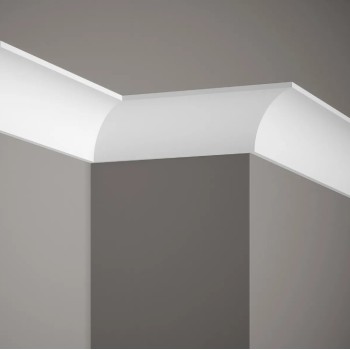 Een stijlvolle afwerking van een ruimte die het plafond met de muren verbindt. Het benadrukt de elegantie van het interieur en geeft het een subtiele charme.