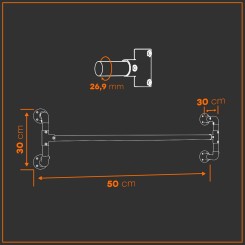 MATERIAAL & BEREIK: Robuuste kwaliteit: De stalen buizen met poedercoating (Ø 26,9 mm) en de hulpstukken van smeedbaar gietijzer hebben een krasvast oppervlak en zijn uiterst veerkrachtig.