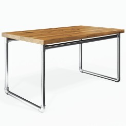 Klemp tafelonderstel Villach in industriële stijl, gemaakt van zilverkleurige aluminium buizen en verbindingsstukken, DIY frame, skid tafelpoten van ronde profielen.