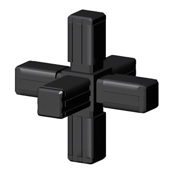 Op voorraad – verzending binnen 1–3 werkdagenEen kruiskoppeling (3 assen, 6 aansluitpunten) voor buizen van 13x13x1 mm, gemaakt van met glasvezel versterkt polyamide PA6, garandeert stabiele verbindingen in lichte aluminium constructies, frames en kooien. Snelle montage door simpelweg vast te kloppen met een rubberen hamer. De zwarte kleur past zich aan de constructie aan.
