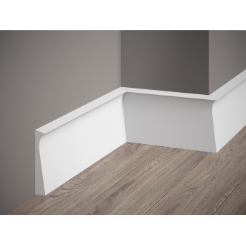 De Premium plint QS004P is de perfecte keuze voor wie houdt van unieke en opvallende details in interieurdesign. Het geometrische ontwerp met een concave vorm en scherpe uiteinden geeft een stijlvolle uitstraling aan ruimtes, benadrukt contrasten en voegt karakter toe aan zowel moderne als klassieke omgevingen.