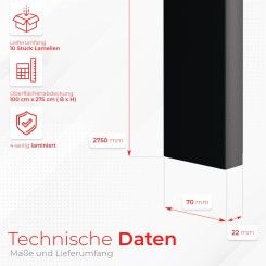 Zorg ervoor dat de muren waarop u de lamellen wilt installeren de juiste kleur hebben, zodat ze er perfect bij passen. Wij raden zwart of grijs aan.