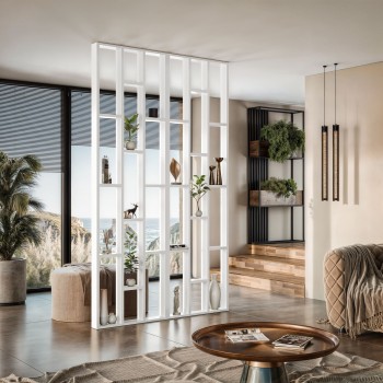 Op zoek naar een praktische opbergoplossing? Of ben je van plan een nieuw interieur te ontwerpen? Kies voor een combinatie van esthetiek en functionaliteit - de vrijstaande kast. De opengewerkte constructie maakt indruk met zijn minimalistische ontwerp en zorgt voor visuele lichtheid. Het werkt net zo goed voor het opbergen van voorwerpen, wanddecoratie of als een praktische ruimte-indeler.