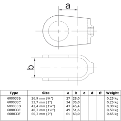 In ons aanbod vindt u ronde verbindingsstukken met diameters van 21,3 mm, 26,9 mm, 33,7 mm, 42,4 mm, 48,3 mm, 60,3 mm.