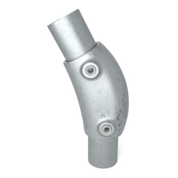 Op voorraad - verzending binnen 2–9 werkdagenVariabel kniestuk 15° - 60°. Elleboogkoppeling als eindstop voor de bovenreling met een variabele hoek van 15° - 60°. Wordt meestal gebruikt bij verticale staanders voor trappen.