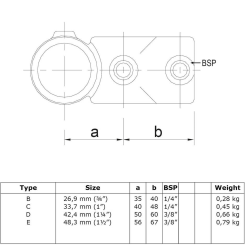 In ons aanbod vindt u ronde verbindingsstukken met diameters van 21,3 mm, 26,9 mm, 33,7 mm, 42,4 mm, 48,3 mm, 60,3 mm.