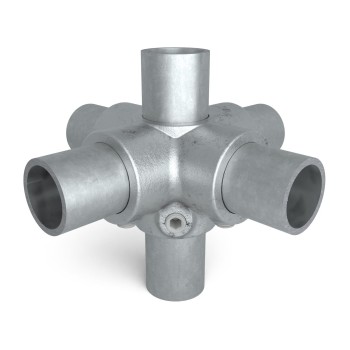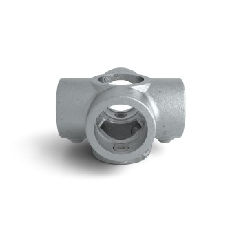Op voorraad - verzending binnen 2–9 werkdagen4-Weg kruisstuk. 4-weg klem om verticale stijlen te koppelen aan 4 horizontale buizen die haaks op elkaar staan. De verticale buis loopt door de klem.