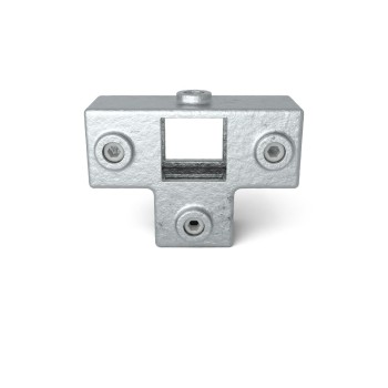 Op voorraad - verzending binnen 2–9 werkdagenT-Stuk met zij-uitgang - 40 mm. 3-weg klem om verticale stijlen te koppelen aan 3 horizontale buizen die haaks op elkaar staan. De verticale buis loopt door de klem.