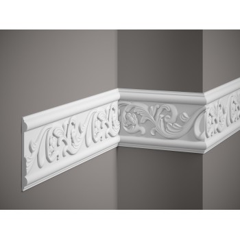 De Muurlijst MDC236 is een decoratief profiel met een centraal ornament en afgeschuinde randen, bedoeld voor het afwerken van wanden en plafonds. Gemaakt van ProFoam-materiaal, is het lichtgewicht en bestand tegen vocht en UV-straling, wat betekent dat het niet zal zwellen, vervormen of zijn kleur verliezen bij blootstelling aan zonlicht. De fabriekstoepassing van de primer zorgt voor een gladde oppervlakte en maakt het schilderen gemakkelijker. Het kan op elke hoogte op wanden of plafonds worden geïnstalleerd, of gebruikt worden als decoratief element op meubels. Installatie vereist geen gespecialiseerde gereedschappen; het is aanbevolen om montagelijm te gebruiken voor een veilige bevestiging.