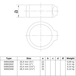 In ons aanbod vindt u ronde verbindingsstukken met diameters van 21,3 mm, 26,9 mm, 33,7 mm, 42,4 mm, 48,3 mm, 60,3 mm.