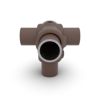 W magazynie - wysyłka 2-9 dni roboczychTrójnik rurowy z rurką wsporczą typ 24, 3-kierunkowy łącznik do mocowania kolumn z 3 poziomymi rurami ułożonymi prostopadle względem siebie. Rura kolumny mieści się w złączu. To złącze jest przewidziane do połączenia z rurą wsporczą. Z ciągłej rury nośnej z trzech innych rur można podłączyć pod kątem prostym. Trzy rury łączące odbiegają od rury wsporczej w trzech różnych kierunkach.