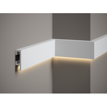 Listwa ścienna QL019 to eleganckie i funkcjonalne rozwiązanie dla osób, które pragną nadać swoim wnętrzom nowoczesny i estetyczny wygląd. Doskonale sprawdzi się w pomieszczeniach narażonych na wilgoć oraz intensywne działanie promieni UV – nie żółknie, nie puchnie ani nie odkształca się z upływem czasu. To idealny wybór do łazienek, kuchni oraz przestrzeni o wysokim stopniu nasłonecznienia. Dzięki zastosowaniu innowacyjnej technologii ScratchShield®, listwa ścienna QL019 jest wyjątkowo odporna na zarysowania i uszkodzenia mechaniczne, co zapewnia jej trwałość i nieskazitelny wygląd przez lata. Dodatkowo, dedykowane miejsce na przewody oraz możliwość montażu taśmy LED pozwalają na stworzenie efektownego podświetlenia, które subtelnie rozświetli wnętrze. Technologia LightGuard zapewnia równomierne i delikatne rozchodzenie się światła po całym pomieszczeniu, nadając mu wyjątkowy klimat. Gotowa do malowania powierzchnia listwy ściennej QL019 ułatwia dopasowanie jej do każdego stylu aranżacyjnego. Dzięki fabrycznej warstwie podkładowej farba doskonale się na niej utrzymuje, co umożliwia łatwą personalizację. Postaw na trwałość, funkcjonalność i elegancję – wybierz listwę ścienną QL019 i stwórz wnętrze, które zachwyca! Zamów już dziś i ciesz się perfekcyjnym wykończeniem swojego domu.