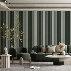Lamele na ścianie można zamontować nad listwą przypodłogową, albo całkowicie zrezygnować z listwy i zamontować je od podłogi.