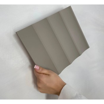 Panele z kolekcji Velutto to połączenie elegancji i nowoczesnego designu. Charakteryzują się półmatowym wykończeniem silky touch, które zapewnia delikatną, gładką powierzchnię w dotyku. Dostępne w trzech kolorach – Shadow Grey, Misty Grey oraz Dessert Beige – doskonale wpisują się w aktualne trendy aranżacji wnętrz. Najbardziej wyróżniającym elementem kolekcji jest unikalny kształt lameli w formie szerokich fal, nadający przestrzeni wyjątkowy charakter. Faliste wzory stanowią oryginalną alternatywę dla klasycznych, prostych listew, wprowadzając do wnętrz subtelny, a zarazem dynamiczny efekt dekoracyjny.