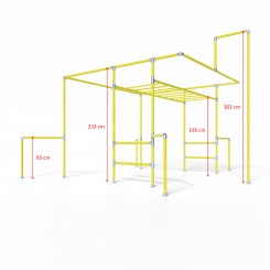 Drążek o wymiarach 3 m x 0.9 m, z dziewięcioma szczeblami posiada także możliwość regulacji wysokości, od 1,2 do 2,3 m, a z przedłużkami – nawet 3 metry.