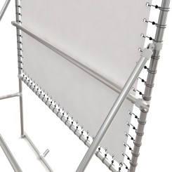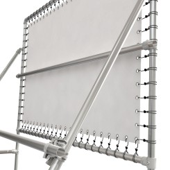Dla ścianek powyżej 200x200 cm są stosowane dodatkowe rury wzmacniające konstrukcję mocowane w pionie. Rura wzmacniająca jest mocowana przy użyciu złączy obejściowych tak że wzmocnienie jest umieszczone pod banerem reklamowym. W przypadku zamocowania na konstrukcji banerów dwustronnie drukowanych nalezy pamiętać o tym że rura wzmocaniająca przesłoni z jednej strony zadruk banera (im większa ścianka tym większa ilość wzmocnień jest stosowana w konstrukcji)