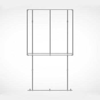 Kompletna wolnostojąca konstrukcja reklamowa. Konstrukcja zbudowana jest z rur aluminiowych, które są połączone za pomocą złączy żeliwnych dokręcanych na śrubę. Złącza po prostu nakłada się na rurę i dokręca kluczem sześciokątnym (można również u nas zamówić). Cała konstrukcja jest wytrzymała i wygląda bardzo estetycznie, co wyróżnia przede wszystkim nasz produkt od konkurencyjnych rozwiązań.