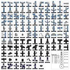 Złącza przedstawione na zdjęciach opisane są wymiarami. Każde złącze posiada prosty i unikalny kod referencyjny zwany typem odróżniający je od wszystkich innych złącz. Pełny kod składa się z typu złącza oraz rozmiaru określającego wielkość pasującej rury lub rur możliwych do złączenia.