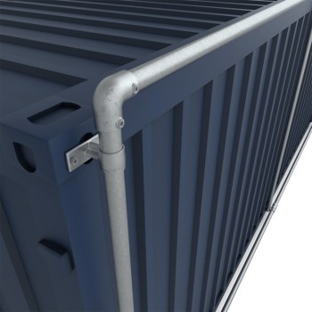 Specjalne uchwyty mocowane do punktów podnoszenia kontenera pozwalają na stabilny montaż ramy bez wiercenia i uszkodzeń konstrukcji.