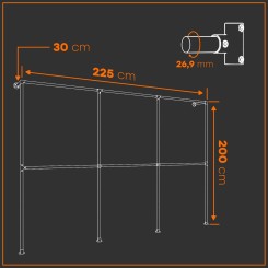 Model Stuttgart: Potrójny wieszak o wysokości 200 cm i szerokości 225 cm. 3 środkowe poprzeczki dzielą stojak na ubrania na 6 kwadratów, każdy o wymiarach ok. 100 x 100 cm. Tworzy to stabilną konstrukcję, która doskonale sprawdza się w sklepach odzieżowych;