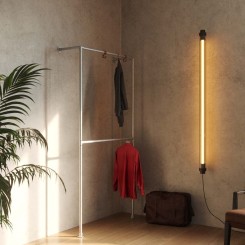 Z pojedynczych wieszaków możesz złożyć szafę typu Walk-in o dużej pojemności poprzez połączenie ze sobą kolejnych elementów. Dzięki temu nieuporządkowane ubrania staną się przeszłością.