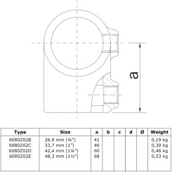 W magazynie - wysyłka 2-9 dni roboczychŁącznik do rur, trójnik, krótki, typ 2. Do produkcji pionowego połączenia między dwiema rurami. Górny łącznik rur dla prostych, poziomych wsporników poręczy / rury.