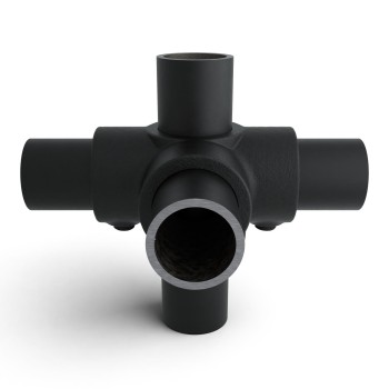 W magazynie - wysyłka 2-9 dni roboczychŁącznik rurowy typ 26B. Łącznik 4-kierunkowy do mocowania wsporników z 4 poziomymi rurami, które są ułożone prostopadle względem siebie. Rura kolumny mieści się w złączu. To złącze jest przewidziane do połączenia z rurą wsporczą. Rura nośna w środku może być całkowicie przełożona przez złącze, ponieważ złącze ma konstrukcję przelotową po środku . Cztery pozostałe połączenia odbiegają od rury podtrzymującej we wszystkich kierunkach.