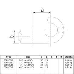 W naszej ofercie znajdziesz złącza okragłe o średniach 21,3 mm, 26,9 mm, 33,7 mm, 42,4 mm, 48,3 mm, 60,3 mm