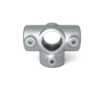 W magazynie - wysyłka 2-9 dni roboczychTrójnik rurowy z rurką wsporczą typ 24, 3-kierunkowy łącznik do mocowania kolumn z 3 poziomymi rurami ułożonymi prostopadle względem siebie. Rura kolumny mieści się w złączu. To złącze jest przewidziane do połączenia z rurą wsporczą. Z ciągłej rury nośnej z trzech innych rur można podłączyć pod kątem prostym. Trzy rury łączące odbiegają od rury wsporczej w trzech różnych kierunkach.