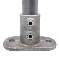Stopa z owalną podstawą typ 12. Mocna podstawa do podpierania słupków pionowych. Pionowe szerokie żebra z dwoma śrubami ustalającymi zwiększają wytrzymałość złącza rurowego. Otwory montażowe w kołnierzu podstawowym zapewniające wytrzymałość na obciążenia.